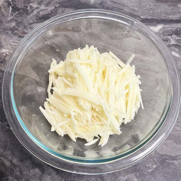 ・耐熱ボウルに入れ、ラップをせずに600wの電子レンジで1分半加熱する。加熱後、キッチンペーパーを使い、じゃがいもの余分な水分をさっと拭き取る。