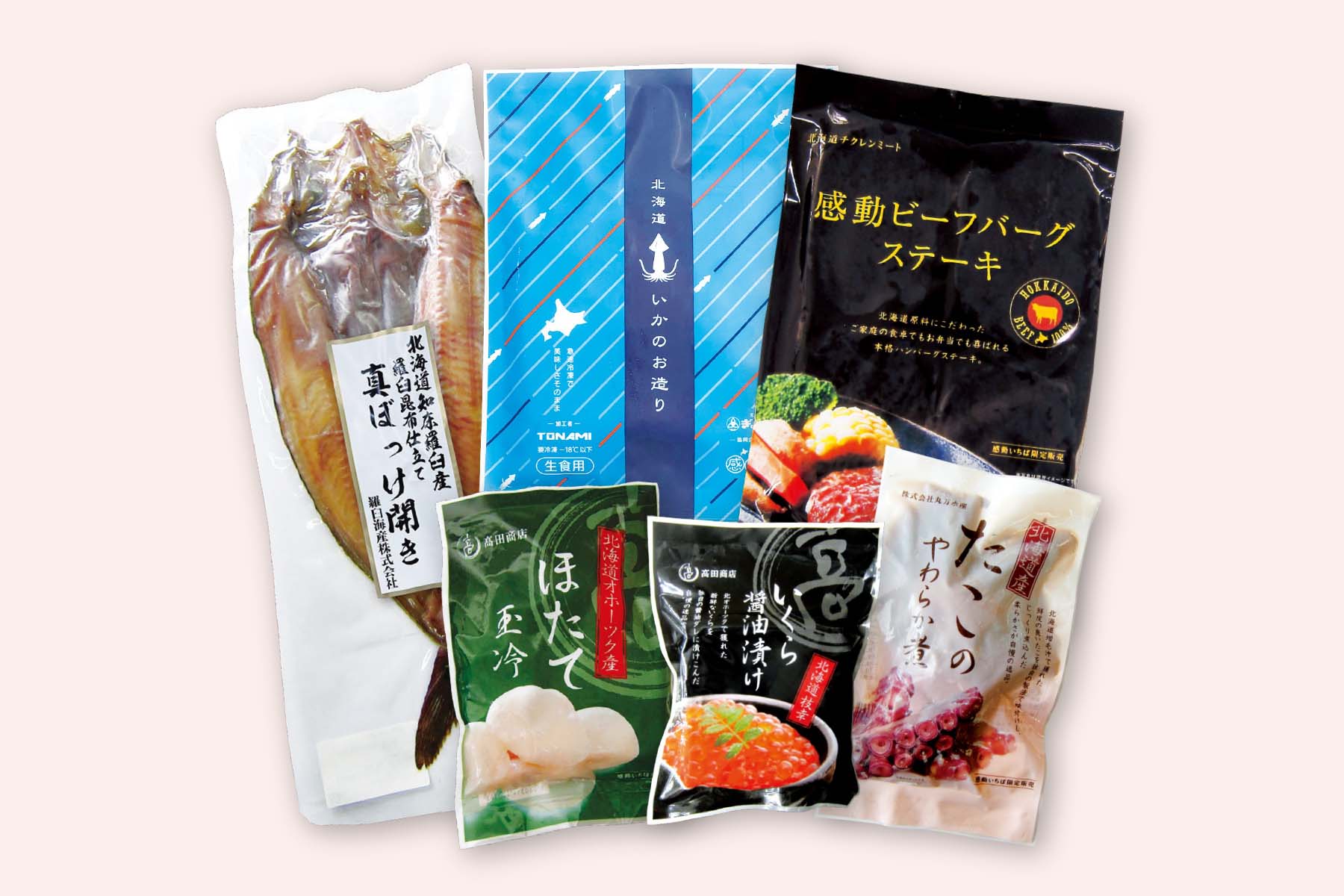 ●北海道枝幸産 天然鮭いくら醤油漬け 北海道枝幸(えさし)町 ●北海道産 たこのやわらか煮 北海道増毛(ましけ)町 ●北海道産 いかのお造り 北海道北斗(ほくと)市 ●北海道枝幸産 天然ほたて貝柱 北海道枝幸(えさし)町 ●北海道羅臼産 真ほっけ開き 北海道羅臼(らうす)町 ●北海道産牛肉使用 感動ビーフバーグステーキ 北海道札幌市 |