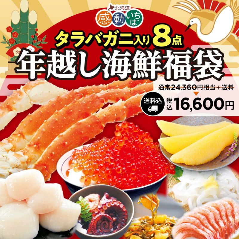 毎年恒例の大人気企画「年越し海鮮福袋」は年末年始におすすめの商品を詰め合わせて、北海道のお正月の“豪華な食卓”を再現したセット。