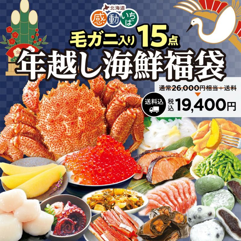 毎年恒例の大人気企画「年越し海鮮福袋」は年末年始におすすめの商品を詰め合わせて、北海道のお正月の“豪華な食卓”を再現したセット。