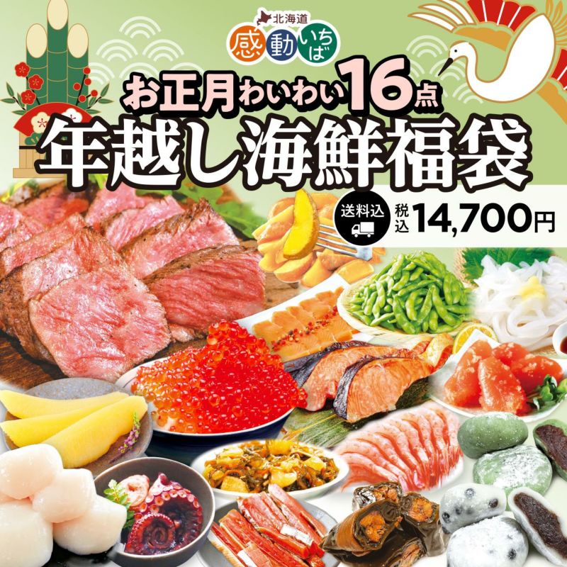 毎年恒例の大人気企画「年越し海鮮福袋」は年末年始におすすめの商品を詰め合わせて、北海道のお正月の“豪華な食卓”を再現したセット。