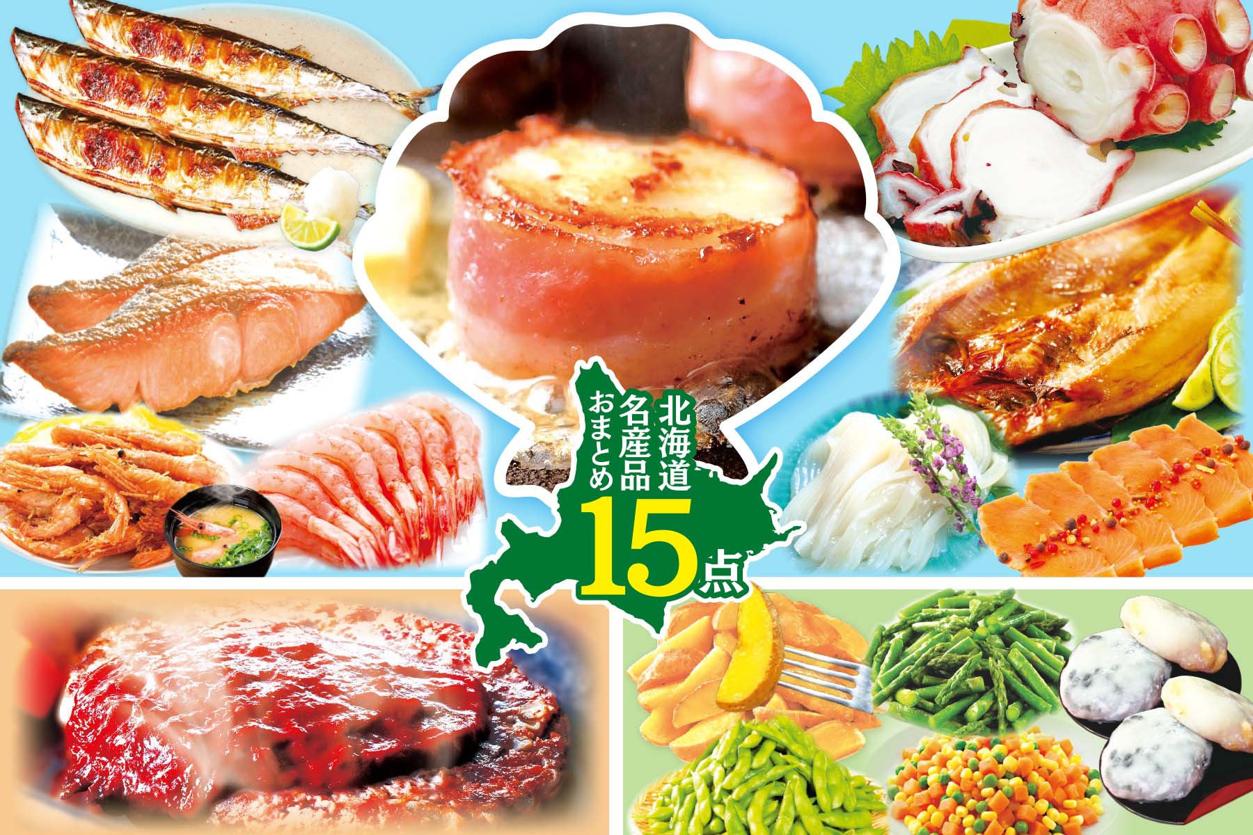 北海道産の名産品を「どっさり」お届け。 感動いちば 海・畜・農 15点セット