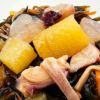 原材料名 | 鰊の卵(北海道産)、ミズダコ、甘えび、昆布、人参、砂糖、醤油、するめ、アミノ酸液、食塩、鰹節エキス、発酵調味料、昆布エキス、梅酢、醸造酢/調味料(アミノ酸等)、ソルビトール、酒精、酸味料、増粘多糖類、カラメル色素、リン酸塩(Na)、保存料(ソルビン酸K)、pH調整剤(一部に小麦・大豆・さばを含む) |