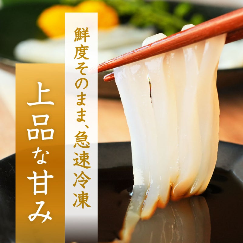 やわらかな身質と上品な甘みが特長の、北海道函館発いかそうめん! 加工した後に急速冷凍しているので、獲れたての味をご自宅で楽しむことができます。
