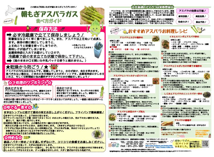 全国的にアスパラは年中収穫できる野菜ですが、北海道では5月のGW~6月の間だけアスパラを収穫しています。収穫する回数が減ることによって、皮が硬くならず、太くてやわらかいアスパラができるんです。3年かけて大事に育てたのち、旬である収穫期間はわずか「3週間」しかありません! この時期だけしか味わえない自慢のアスパラをお召し上がりください。