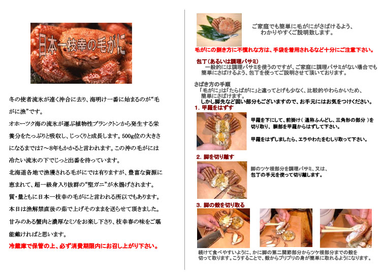 食べ方ガイド付きなので、カニを自分で剥いて食べたことがない方も安心! キッチンバサミだけあれば美味しくお召し上がりいただけます。