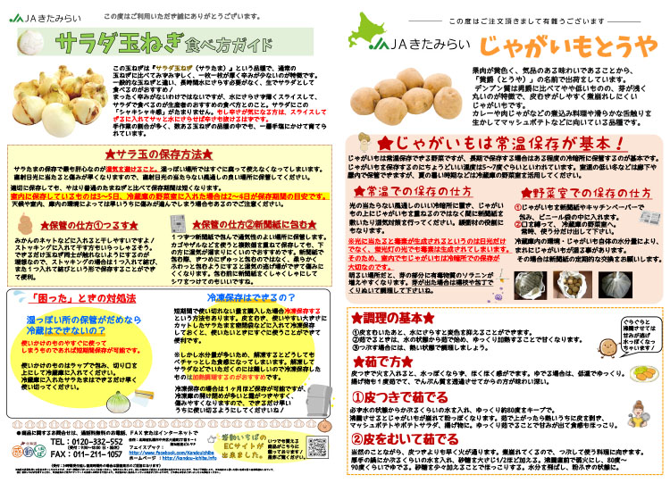 今回お届けのじゃがたまセットは、産地直送でお届け! 保存方法がよく分かる食べ方ガイドを同封しますので、ぜひ参考にして「北見の大自然の味」をご堪能ください。日常のお料理に使いやすいじゃがいも&たまねぎをアレンジレシピで美味しくどうぞ♪