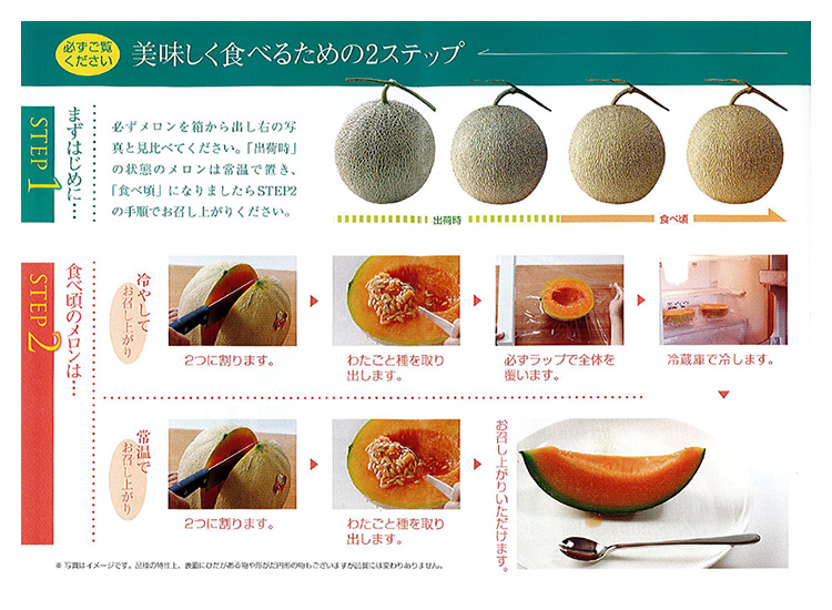 今回お届けの夕張メロンは、産地直送でお届け! 食べごろがよく分かる食べ方ガイドも同封しますので、ぜひ参考にして「メロンの王様」をご堪能ください!